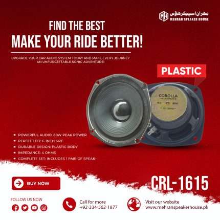 Mehran Speakers CRL-1615 – 6-Inch Door Speakers – 80W Peak Power – Plastic Body – 1 Pair